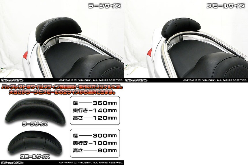 ■受注生産商品となっており、商品手配後 2週間程度入荷にお時間を頂きます。■フォルツァ(MF10)用 バックレスト付き 38Φタンデムバー エレガントタイプです。●今、ローダウンはスクーターカスタムの定番となっておりますが、そのローフォルムに合わせて出来るだけ車体全体を低く見せるために、車体との一体感を追求したタンデムバーを開発いたしました!●車体に沿うように低くデザインされているのでボディラインにフィットし、かつ従来品よりもさらに超極太38mm径のステンレスパイプを採用しましたので、存在感、目立ち度は抜群です!仕上げはバフ掛けを施していますので、高級感タップリでドレスアップには最適の逸品です!●バーが極太なので、パッセンジャーが握りやすく力を入れやすいので、安全性も高くなっております。パッセンジャーの快適性向上のため、大型バックレストを標準装備しております。●表面素材にはノーマルシートと似たシート生地を使用していますので、取って付けた感じは無くとてもマッチします。●オリジナルバックレストは型から興して製作していますので、見た目も良く耐久性に優れたしっかりとした作りになっています。●ラージサイズとスモールサイズの2サイズをご用意しておりますので、お好みに応じて選択して頂けます。(装着画像のバックレストはラージサイズです。)●お好みに応じてバーエンドの形状を、エレガントタイプとブライアントタイプの2種類から選択して頂けます。●デザインカスタム重視の方、タンデムが多い方などに特にオススメです。