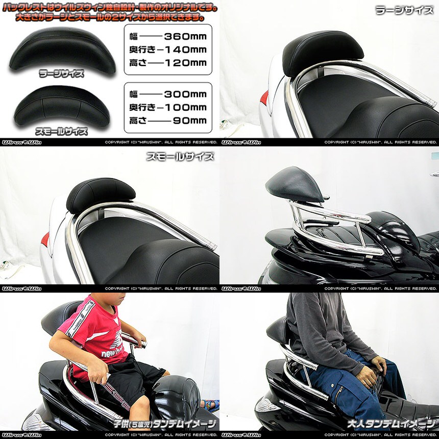 安心して安全にタンデム走行をしていただけるよう、機能面を重視した商品です。子供から大人までしっかりとタンデムを快適にサポートします。急発進時、横揺れ時、ブレーキング時の転落を防止します。子供、大人をタンデムしてのテスト走行を繰り返し開発した専用特別設計で、パッセンジャーをしっかりサポートしてくれるパーツです。パッセンジャーの快適性向上のため、大型バックレストを標準装備しております。表面素材にはノーマルシートと似たシート生地を使用していますので、取って付けた感じは無くとてもマッチします。オリジナルバックレストは型から興して製作していますので、見た目も良く耐久性に優れたしっかりとした作りになっています。取り付けは、簡単に無加工でしっかりとボルトオンで固定できます。材質は、耐久性、耐食性の高いステンレスを使用しています。オールステンレス製です。仕上げはバフ掛けを施していますので、高級感タップリでドレスアップにも最適の逸品です!バーが極太なので、パッセンジャーが握りやすく力を入れやすいので、安全性も高くなっております。
