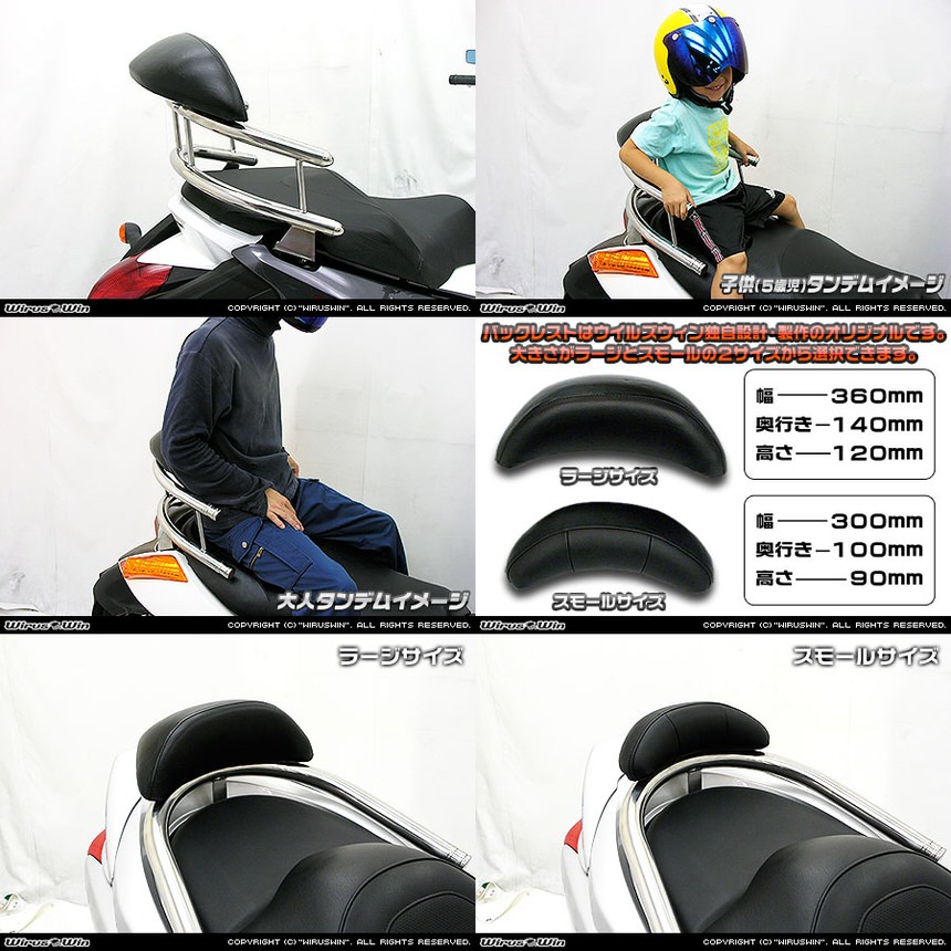 ■受注生産商品となっており、商品手配後 2週間程度入荷にお時間を頂きます。■フェイズ用 バックホールドタンデムバー ブライアントタイプです。安心して安全にタンデム走行をしていただけるよう、機能面を重視した商品です。子供から大人までしっかりとタンデムを快適にサポートします。急発進時、横揺れ時、ブレーキング時の転落を防止します。子供、大人をタンデムしてのテスト走行を繰り返し開発した専用特別設計で、パッセンジャーをしっかりサポートしてくれるパーツです。(見本画像の一部の車体はスズキジェンマです。)パッセンジャーの快適性向上のため、大型バックレストを標準装備しております。表面素材にはノーマルシートと似たシート生地を使用していますので、取って付けた感じは無くとてもマッチします。オリジナルバックレストは型から興して製作していますので、見た目も良く耐久性に優れたしっかりとした作りになっています。取り付けは、簡単に無加工でしっかりとボルトオンで固定できます。材質は、耐久性、耐食性の高いステンレスを使用しています。オールステンレス製です。仕上げはバフ掛けを施していますので、高級感タップリでドレスアップにも最適の逸品です!バーが極太なので、パッセンジャーが握りやすく力を入れやすいので、安全性も高くなっております。