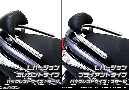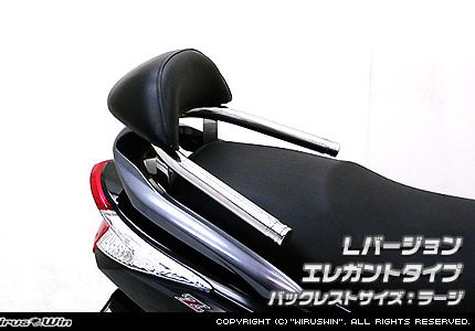 ■受注生産商品となっており、商品手配後 2週間程度入荷にお時間を頂きます。■従来モデルのSバージョンからバーの長さを車両前方に延長し、新たに車体への固定部分を左右に追加して耐久性を上げ、剛性をアップいたしました。よりシッカリ感がアップしており、タンデム時に安心してご使用頂けるようになっております。●今、ローダウンはスクーターカスタムの定番となっておりますが、そのローフォルムに合わせて出来るだけ車体全体を低く見せるために、車体との一体感を追求したタンデムバーを開発いたしました!●車体に沿うように低くデザインされているのでボディラインにフィットし、かつ極太の32mm径のステンレスパイプを採用しましたので、存在感、目立ち度は抜群です!仕上げはバフ掛けを施していますので、高級感タップリでドレスアップには最適の逸品です!●バーが極太なので、パッセンジャーが握りやすく力を入れやすいので、安全性も高くなっております。お好みに応じてバーエンドの形状を、エレガントタイプとブライアントタイプの2種類から選択して頂けます。●また、ユーザー様に、よりお手軽に装着して頂くため、大型バックレストをウイルズウィンオリジナルで製作しました。従来の価格より大幅に値下げする事に成功しましたので、よりお求めやすくなりました。●オリジナルバックレストは型から興して製作していますので、見た目も良く耐久性に優れるしっかりとした作りになっています。●ラージサイズとスモールサイズの2サイズをご用意しておりますので、お好みに応じて選択して頂けます。(装着画像のバックレストはラージサイズです。)