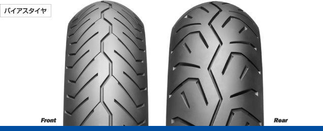 アメリカン・クルーザー用のスポーツタイプタイヤが待望のデビュー!世界中の厳しい環境で培われた優れた基本性能と確かな品質でさらに楽しく、スポーティなバイクライフをお届けする。こんなお客様におすすめ:●アメリカン・クルーザーをお持ちのお客様へ。●ロングツーリング、高速ツーリングを快適に楽しみたいお客様へ。複雑化したクルーザーにおいて優れた基本性能を発揮させるべく最新のパタンデザイン/実績の高い技術を採用。クルーザー車輌に最適なクラウン形状と構造を採用。車輌重量の重いマシンにおいてタンデム走行をしても優れた直進安定性と操縦安定性を発揮。クルーザー車輌に最適なコンパウンドと構造/パタンデザインの採用により、ロングライフでありながら、優れたドライグリップ、ウェットグリップを発揮。