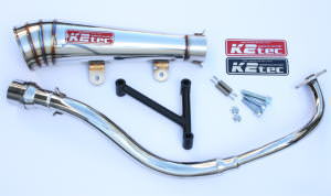 GPスタイルエキゾースト(GP-R メガホン)。ステンレス手曲げエキパイ。サイレンサー外径Φ86。筒長280mmバッフル付き。●小さなサイレンサーの内部には音量を抑えつつ、低音を響かせる構造を取り入れております。街乗りに求められる中間加速を重視した仕上がりです。