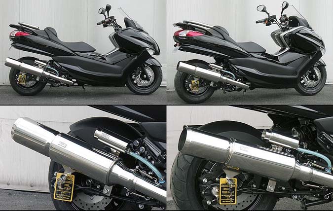 ■受注生産商品となっており、商品手配後 2週間程度入荷にお時間を頂きます。■サイレンサー出口には、サイレンサーボディーに負けない程の大型なタイプを使用しています。サイレンサーボディーと出口との長さの比率を従来のマフラーより変える事で、大変太く迫力あるマフラーに見せることができました。エキパイ部分は3段階に太くなり、最終的にサイレンサーの迫力にマッチするよう高級感抜群の仕上がりとなっております。車体のラインに調和するようにサイレンサーの位置を吟味し、あらゆるカスタムに似合うようシンプルながら高級感をイメージし、たくさんの方々からの意見を取り入れ製作しました。音量、音質にもとことん拘って、何本ものテスト品の中からベストな構造を導き出して完成させました。うるさすぎず静かすぎず、歯切れの良い重低音サウンドを醸し出します。バッフル(消音用のパーツ)を標準装備しておりますので、簡単な作業で2種類の音量が選択できます。サイレンサーをしっかり2点止めで固定できるようにしていますので耐久性も安心です。排気濃度センサーの取り付けも対応していますのでノーマルマフラーと同じように固定できます。性能面でも低中速の落ち込みをなくしスムーズな走行を実現させています。ローダウン車にも対応しておりますが、極端にローダウンしている車両(30mm以上ダウン、大きめのサイドカウル装着車)は、マフラーとボディが干渉する恐れがありますので、購入・装着にはご注意ください。材質は、耐久性、耐腐食性の高いオールステンレス製です。●バッフル装着時:排気音量約 90db●バッフル非装着時:排気音量 約 94db