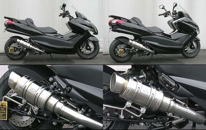 ■受注生産商品となっており、商品手配後 2週間程度入荷にお時間を頂きます。■マジェスティ250( 4D9 )用アトミックショートマフラー ポッパータイプです。サイレンサー短くした、最先端のトレンドマフラーです。極端に派手すぎずできるだけシンプルに自然なラインをイメージして制作しました。幾度ものテストを重ねて、高強度で耐久性に優れた製品に仕上げました。材質は、耐久性、耐食性の高いステンレス製になります。音量、音質にもとことん拘って、歯切れの良いサウンドを醸し出します。バッフル(消音用のパーツ)を標準装備しておりますので、簡単な作業で2種類の音量が選択できます。装着はステーを2点止めで固定し、サイレンサーをバンドで止めてエキパイをエンジン側に固定するだけですので比較的簡単に取り付けできます。排気濃度センサーの取り付けも対応していますのでノーマルマフラーと同じように固定できます。性能面でも低中速の落ち込みをなくしスムーズな走行を実現させています。ローダウン車にも対応できるよう製作しています。●バッフル装着時:排気音量約 92db●バッフル非装着時:排気音量 約 96db