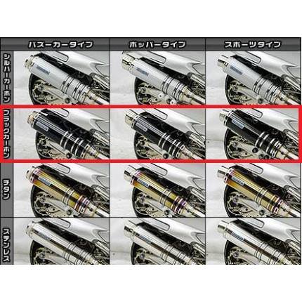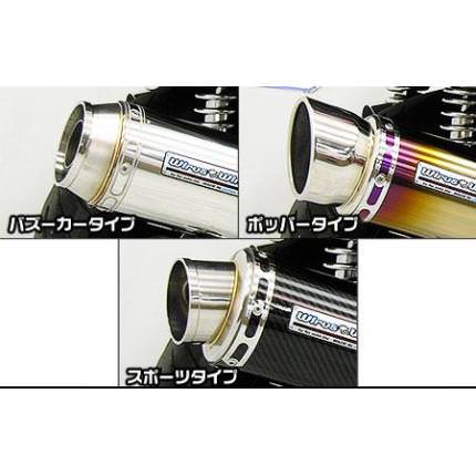 ■受注生産商品となっており、商品手配後 2週間程度入荷にお時間を頂きます。■マジェスティ250( 5GM・5SJ )用アルティメットマフラー ブラックカーボン仕様です。究極の理想型を具現化した新時代マフラーです。高級感を追求したデザインを施し、ノーマル車からハードカスタム車まで、若者から年配者まで幅広い層に対応するマフラーに仕上げました。アルティメットマフラーは、高度な技術をぎっしりと余すところ無く詰め込んだ、クオリティの高い究極の一品に仕上がっています。サイレンサー出口には削り出しタイプを採用し、立体感ある造形が最終エンドを引き締める【 バズーカータイプ 】、内巻きタイプのスラッシュカットが高級感を漂わせる【 ポッパータイプ 】、シンプルでスポーティでありながら高級感を損なわないエンド処理を施した【 スポーツタイプ 】の3種類をご用意しております。性能の違いはなくデザインの違いだけですので、お好みに合わせて選択して頂けます。ステーにはこれまでに無かったアルミ無垢材から削り出した、ビレットタイプ を採用しました。WirusWinロゴも彫り込まれております。プレート、カラー、ボルトキャップすべてアルミ無垢材からの削り出しで製作しており、シャープで超高級デザインに仕上がっています。幾度ものテストを重ね、高強度で耐久性に優れた製品に仕上げました。サイレンサー内部には、従来オプション扱いだった【 キャタライザー(排ガス浄化触媒)】を標準装備しておりますので、ノーマル同様の環境性能を発揮致します。音量、音質にもとことん拘って、歯切れの良いサウンドを醸し出します。音量は静か目に設定していますので、近所迷惑になる事無く走行できます。バッフル(消音用のパーツ)を標準装備しておりますので、簡単な作業で2種類の音量が選択できます。装着はステーを2点止めで固定し、サイレンサーをバンドで止めてエキパイをエンジン側に固定するだけですので比較的簡単に取り付けできます。性能面でも低中速の落ち込みをなくしスムーズな走行を実現させています。ローダウン車にも対応できるよう製作しています。極端なローダウン量、ショックの固さ、走行条件、ワイドカウル装着等で場合によりボディと干渉する恐れがありますのでご注意下さい。干渉してしまう際には走行時にはリアショックを一番固い設定にして使用してください。●バッフル装着時:排気音量約 90db●バッフル非装着時:排気音量 約 93db