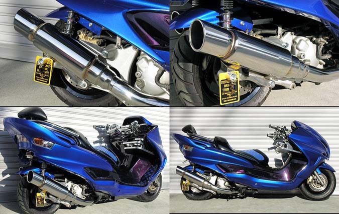 ■受注生産商品となっており、商品手配後 2週間程度入荷にお時間を頂きます。■マジェスティ250( 5GM・5SJ )用ファーストマフラーです。新設計により更なる高品質、驚愕の低価格を実現しました!!マフラー選びでお悩みの方、まずはこのマフラーからいかがでしょうかデザインは幅広い層に気に入って頂けるよう、車体のラインに調和するようにサイレンサーの位置を吟味し、あらゆるカスタムに似合うようにシンプルながら高級感溢れるマフラーに仕上げました。サイレンサー出口には、内側にカールしたカールエンドタイプを使用しています。サイレンサーは大きすぎず小さすぎないバランスの良い115mm径を採用しました。音量、音質にもとことん拘って、何本ものテスト品の中からベストな構造を導き出して完成させました。うるさすぎず静かすぎず、歯切れの良い重低音サウンドを醸し出します。バッフル(消音用のパーツ)を標準装備しておりますので、簡単な作業で2種類の音量が選択できます。性能面でも低中速の落ち込みをなくしスムーズな走行を実現させています。ローダウン車にも対応しておりますが、極端にローダウンしている車両(30mm以上ダウン、大きめのサイドカウル装着車)は、マフラーとボディが干渉する恐れがありますので、購入・装着にはご注意ください。材質は耐久性、耐食性の高いオールステンレス製です。 ●バッフル装着時:排気音量約 92db●バッフル非装着時:排気音量 約 96db