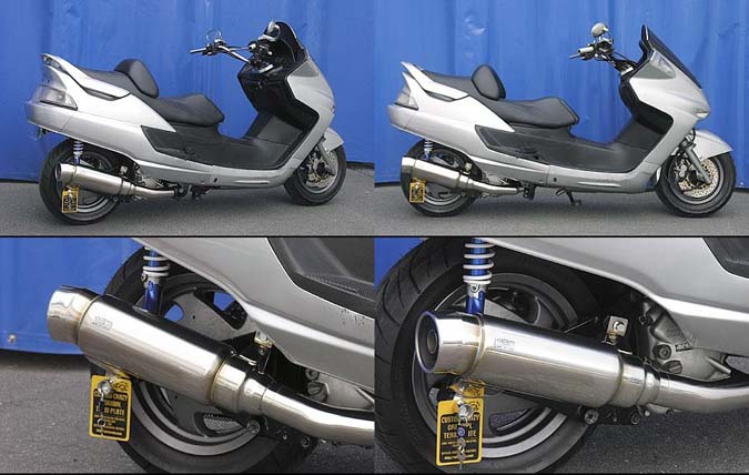 ■受注生産商品となっており、商品手配後 2週間程度入荷にお時間を頂きます。■マジェスティー250( 4HC・リアブレーキドラムタイプ )用ステップマフラーです。新設計により更なる高品質、驚愕の低価格を実現しました!!マフラー選びでお悩みの方、まずはこのマフラーからいかがでしょうかデザインは幅広い層に気に入って頂けるよう、車体のラインに調和するようにサイレンサーの位置を吟味し、あらゆるカスタムに似合うようにシンプルながら高級感溢れるマフラーに仕上げました。サイレンサー出口には、内側にカールしたカールエンドタイプを使用しています。サイレンサーは迫力のある大型の125mm径を採用しました。音量、音質にもとことん拘って、何本ものテスト品の中からベストな構造を導き出して完成させました。うるさすぎず静かすぎず、歯切れの良い重低音サウンドを醸し出します。バッフル(消音用のパーツ)を標準装備しておりますので、簡単な作業で2種類の音量が選択できます。性能面でも低中速の落ち込みをなくしスムーズな走行を実現させています。ローダウン車にも対応しておりますが、極端にローダウンしている車両(30mm以上ダウン、大きめのサイドカウル装着車)は、マフラーとボディが干渉する恐れがありますので、購入・装着にはご注意ください。材質は耐久性、耐食性の高いオールステンレス製です。 ●バッフル装着時:排気音量約 92db●バッフル非装着時:排気音量 約 96db