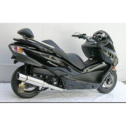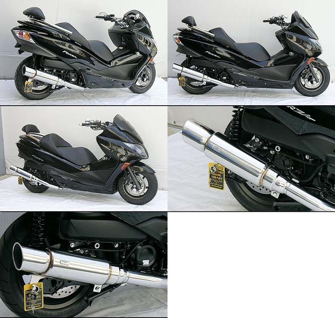 フォルツァ( MF10 )用ファーストマフラーです。新設計により更なる高品質、驚愕の低価格を実現しました!!マフラー選びでお悩みの方、まずはこのマフラーからいかがでしょうかデザインは幅広い層に気に入って頂けるように、シンプルで高級感溢れるマフラーに仕上げました。サイレンサー出口には、内側にカールしたカールエンドタイプを使用しています。サイレンサーは大きすぎず小さすぎないバランスの良い115mm径を採用しました。音量、音質にもとことん拘って、歯切れの良いサウンドを醸し出します。バッフル(消音用のパーツ)を標準装備しておりますので、簡単な作業で2種類の音量が選択できます。ローダウン車にも対応しておりますが、極端にローダウンしている車両(30mm以上ダウン、大きめのサイドカウル装着車)は、マフラーとボディが干渉する恐れがありますので、購入・装着にはご注意ください。材質は耐久性、耐食性の高いオールステンレス製です。 ●バッフル装着時:排気音量約 92db●バッフル非装着時:排気音量 約 96db