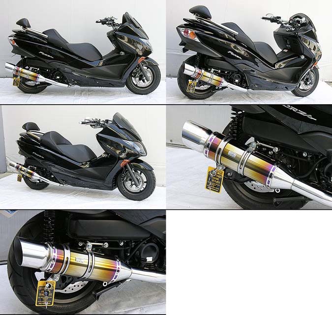 フォルツァ( MF10 )用エクシードチタンマフラーです。サイレンサーメインパイプにレインボーカラーの焼き色を施したチタンパイプを採用しました。ステンレス製のバンド2本で車体に固定します。サイレンサー出口には、サイレンサーボディーに負けない程の大型なタイプを使用しています。サイレンサーの両端末には、エッジング加工のエンドバンドを使用し、細かい箇所でドレスアップ演出を施しています。また、エキパイとサイレンサーのエキパイのジョイント部には、スムーズなラインを出すためにテーパー加工設計にしてます。幅広い層に気に入ってもらえるよう、シンプルで高級感溢れるマフラーに仕上げました。音量、音質にもとことん拘って、歯切れの良いサウンドを醸し出します。バッフル(消音用のパーツ)を標準装備しておりますので、簡単な作業で2種類の音量が選択できます。ローダウン車にも対応しておりますが、極端にローダウンしている車両(30mm以上ダウン、大きめのサイドカウル装着車)は、マフラーとボディが干渉する恐れがありますので、購入・装着にはご注意ください。サイレンサーメインパイプはチタン製、その他の部分はステンレス製です。 ●バッフル装着時:排気音量約 90db●バッフル非装着時:排気音量 約 94db