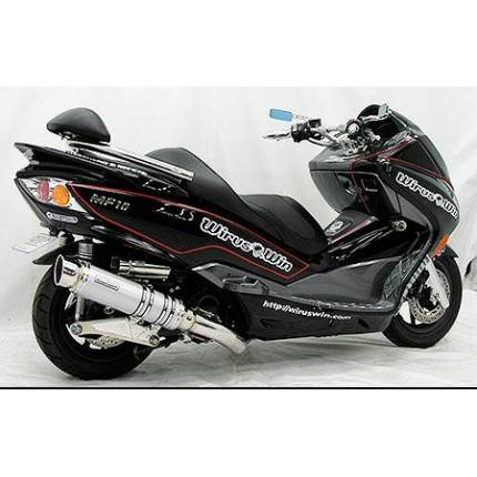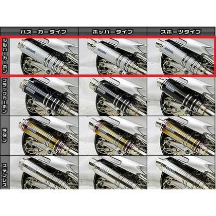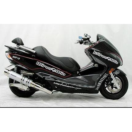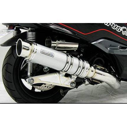■受注生産商品となっており、商品手配後 2週間程度入荷にお時間を頂きます。■フォルツァ( MF10 )用アルティメットマフラー シルバーカーボン仕様です。究極の理想型を具現化した新時代マフラーです。高級感を追求したデザインを施し、ノーマル車からハードカスタム車まで、若者から年配者まで幅広い層に対応するマフラーに仕上げました。アルティメットマフラーは、高度な技術をぎっしりと余すところ無く詰め込んだ、クオリティの高い究極の一品に仕上がっています。サイレンサー出口には削り出しタイプを採用し、立体感ある造形が最終エンドを引き締める【 バズーカータイプ 】、内巻きタイプ。スラッシュカットが高級感を漂わせる【 ポッパータイプ 】、シンプルでスポーティでありながら高級感を損なわないエンド処理を施した【 スポーツタイプ 】の3種類をご用意しております。性能の違いはなくデザインの違いだけですので、お好みに合わせて選択して頂けます。サイレンサーメインパイプには、【 シルバーカーボン仕様】、【 ブラックカーボン仕様】、【 チタン仕様】、【 ステンレス仕様】の4タイプをご用意しております。●本マフラーはシルバーカーボン仕様となります。それぞれのサイレンサーが強烈なインパクトがあり、非常に完成度の高い作りになっています。ユーザー様のカスタムイメージやお好みに合わせて選択していただけます。サイレンサーメインパイプ以外には、耐久性、耐食性の高いステンレスを採用しております。ステーにはこれまでに無かったアルミ無垢材から削り出した、ビレットタイプ を採用しました。WirusWinロゴも彫り込まれております。プレート、カラー、ボルトキャップすべてアルミ無垢材からの削り出しで製作しており、シャープで超高級デザインに仕上がっています。幾度ものテストを重ね、高強度で耐久性に優れた製品に仕上げました。サイレンサー内部には、従来オプション扱いだった【 キャタライザー(排ガス浄化触媒)】を標準装備しておりますので、ノーマル同様の環境性能を発揮致します。音量、音質にもとことん拘って、歯切れの良いサウンドを醸し出します。音量は静か目に設定していますので、近所迷惑になる事無く走行できます。バッフル(消音用のパーツ)を標準装備しておりますので、簡単な作業で2種類の音量が選択できます。装着はステーを2点止めで固定し、サイレンサーをバンドで止めてエキパイをエンジン側に固定するだけですので比較的簡単に取り付けできます。性能面でも低中速の落ち込みをなくしスムーズな走行を実現させています。ローダウン車にも対応できるよう製作しています。極端なローダウン量、ショックの固さ、走行条件、ワイドカウル装着等で場合によりボディと干渉する恐れがありますのでご注意下さい。干渉してしまう際には走行時にはリアショックを一番固い設定にして使用してください。●バッフル装着時:排気音量約 90db●バッフル非装着時:排気音量 約 93db