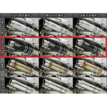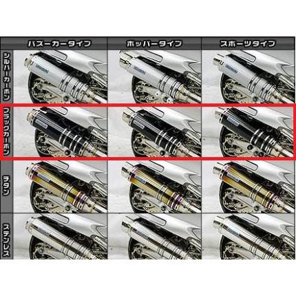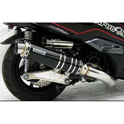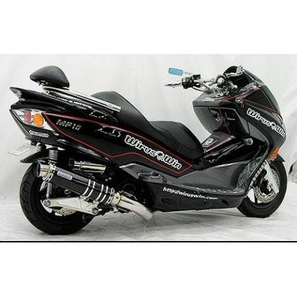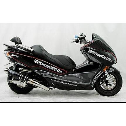 ■受注生産商品となっており、商品手配後 2週間程度入荷にお時間を頂きます。■フォルツァ( MF10 )用アルティメットマフラー ブラックカーボン仕様です。究極の理想型を具現化した新時代マフラーです。高級感を追求したデザインを施し、ノーマル車からハードカスタム車まで、若者から年配者まで幅広い層に対応するマフラーに仕上げました。アルティメットマフラーは、高度な技術をぎっしりと余すところ無く詰め込んだ、クオリティの高い究極の一品に仕上がっています。サイレンサー出口には削り出しタイプを採用し、立体感ある造形が最終エンドを引き締める【 バズーカータイプ 】、内巻きタイプ。スラッシュカットが高級感を漂わせる【 ポッパータイプ 】、シンプルでスポーティでありながら高級感を損なわないエンド処理を施した【 スポーツタイプ 】の3種類をご用意しております。性能の違いはなくデザインの違いだけですので、お好みに合わせて選択して頂けます。サイレンサーメインパイプには、【 シルバーカーボン仕様】、【 ブラックカーボン仕様】、【 チタン仕様】、【 ステンレス仕様】の4タイプをご用意しております。●本マフラーはブラックカーボン仕様となります。それぞれのサイレンサーが強烈なインパクトがあり、非常に完成度の高い作りになっています。ユーザー様のカスタムイメージやお好みに合わせて選択していただけます。サイレンサーメインパイプ以外には、耐久性、耐食性の高いステンレスを採用しております。ステーにはこれまでに無かったアルミ無垢材から削り出した、ビレットタイプ を採用しました。WirusWinロゴも彫り込まれております。プレート、カラー、ボルトキャップすべてアルミ無垢材からの削り出しで製作しており、シャープで超高級デザインに仕上がっています。幾度ものテストを重ね、高強度で耐久性に優れた製品に仕上げました。サイレンサー内部には、従来オプション扱いだった【 キャタライザー(排ガス浄化触媒)】を標準装備しておりますので、ノーマル同様の環境性能を発揮致します。音量、音質にもとことん拘って、歯切れの良いサウンドを醸し出します。音量は静か目に設定していますので、近所迷惑になる事無く走行できます。バッフル(消音用のパーツ)を標準装備しておりますので、簡単な作業で2種類の音量が選択できます。装着はステーを2点止めで固定し、サイレンサーをバンドで止めてエキパイをエンジン側に固定するだけですので比較的簡単に取り付けできます。性能面でも低中速の落ち込みをなくしスムーズな走行を実現させています。ローダウン車にも対応できるよう製作しています。極端なローダウン量、ショックの固さ、走行条件、ワイドカウル装着等で場合によりボディと干渉する恐れがありますのでご注意下さい。干渉してしまう際には走行時にはリアショックを一番固い設定にして使用してください。●バッフル装着時:排気音量約 90db●バッフル非装着時:排気音量 約 93db
