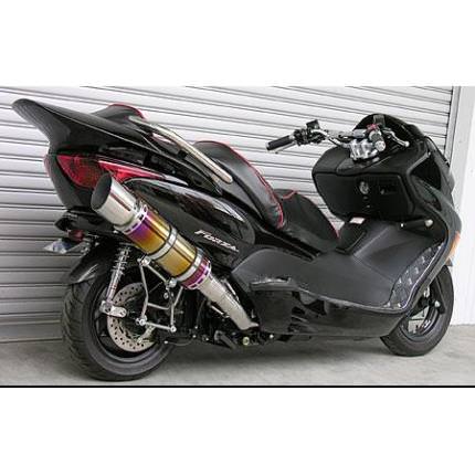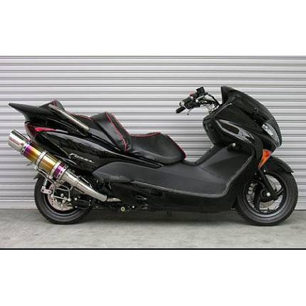 ■受注生産商品となっており、商品手配後 2週間程度入荷にお時間を頂きます。■フォルツァ( MF08 )用ビーストマフラー タイプEです。今、流行のサイレンサーをカチ上げたタイプのマフラーです。極端に派手すぎず、できるだけシンプルにトータルバランスを考えて自然なラインをイメージして制作しました。ステーには強度の高い12mm径のステンレス丸棒を使用しており、幾度ものテストを重ねて、高強度で耐久性に優れた製品に仕上げました。サイレンサーにはレーシングマシンにも採用されている、超軽量で高硬度のチタン [titanium]を採用しています。サイレンサー以外の材質は、耐久性、耐食性の高いステンレス製になります。装着はステーを2点止めで固定し、サイレンサーをバンドで止めてエキパイをエンジン側に固定するだけですので比較的簡単に取り付けできます。音量、音質にもとことん拘って、歯切れの良いサウンドを醸し出します。バッフル(消音用のパーツ)を標準装備しておりますので、簡単な作業で2種類の音量が選択できます。出口はインパクトのある大口径115mm径のEタイプ、チタンサイレンサーボディは、焼き色バージョン、ポリッシュバージョンから、お好みに合わせて選択可能です。※車体装着見本の画像は、焼き色バージョンです。●バッフル装着時:排気音量約 90db●バッフル非装着時:排気音量 約 94db
