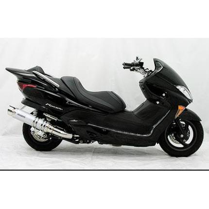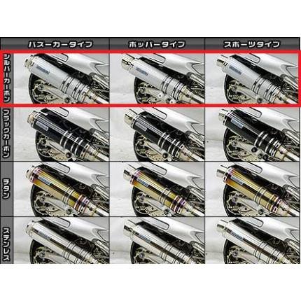 フォルツァ( MF08 )用アルティメットマフラー シルバーカーボン仕様です。究極の理想型を具現化した新時代マフラーです。高級感を追求したデザインを施し、ノーマル車からハードカスタム車まで、若者から年配者まで幅広い層に対応するマフラーに仕上げました。アルティメットマフラーは、高度な技術をぎっしりと余すところ無く詰め込んだ、クオリティの高い究極の一品に仕上がっています。サイレンサー出口には削り出しタイプを採用し、立体感ある造形が最終エンドを引き締める【 バズーカータイプ 】、内巻きタイプのスラッシュカットが高級感を漂わせる【 ポッパータイプ 】、シンプルでスポーティでありながら高級感を損なわないエンド処理を施した【 スポーツタイプ 】の3種類をご用意しております。性能の違いはなくデザインの違いだけですので、お好みに合わせて選択して頂けます。ステーにはこれまでに無かったアルミ無垢材から削り出した、ビレットタイプ を採用しました。WirusWinロゴも彫り込まれております。プレート、カラー、ボルトキャップすべてアルミ無垢材からの削り出しで製作しており、シャープで超高級デザインに仕上がっています。幾度ものテストを重ね、高強度で耐久性に優れた製品に仕上げました。サイレンサー内部には、従来オプション扱いだった【 キャタライザー(排ガス浄化触媒)】を標準装備しておりますので、ノーマル同様の環境性能を発揮致します。音量、音質にもとことん拘って、歯切れの良いサウンドを醸し出します。音量は静か目に設定していますので、近所迷惑になる事無く走行できます。バッフル(消音用のパーツ)を標準装備しておりますので、簡単な作業で2種類の音量が選択できます。装着はステーを2点止めで固定し、サイレンサーをバンドで止めてエキパイをエンジン側に固定するだけですので比較的簡単に取り付けできます。性能面でも低中速の落ち込みをなくしスムーズな走行を実現させています。ローダウン車にも対応できるよう製作しています。極端なローダウン量、ショックの固さ、走行条件、ワイドカウル装着等で場合によりボディと干渉する恐れがありますのでご注意下さい。干渉してしまう際には走行時にはリアショックを一番固い設定にして使用してください。●バッフル装着時:排気音量約 90db●バッフル非装着時:排気音量 約 93db