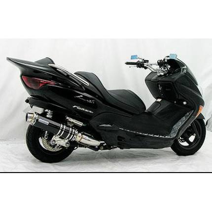 ■受注生産商品となっており、商品手配後 2週間程度入荷にお時間を頂きます。■フォルツァ( MF08 )用アルティメットマフラー ブラックカーボン仕様です。究極の理想型を具現化した新時代マフラーです。高級感を追求したデザインを施し、ノーマル車からハードカスタム車まで、若者から年配者まで幅広い層に対応するマフラーに仕上げました。アルティメットマフラーは、高度な技術をぎっしりと余すところ無く詰め込んだ、クオリティの高い究極の一品に仕上がっています。サイレンサー出口には削り出しタイプを採用し、立体感ある造形が最終エンドを引き締める【 バズーカータイプ 】、内巻きタイプのスラッシュカットが高級感を漂わせる【 ポッパータイプ 】、シンプルでスポーティでありながら高級感を損なわないエンド処理を施した【 スポーツタイプ 】の3種類をご用意しております。性能の違いはなくデザインの違いだけですので、お好みに合わせて選択して頂けます。ステーにはこれまでに無かったアルミ無垢材から削り出した、ビレットタイプ を採用しました。WirusWinロゴも彫り込まれております。プレート、カラー、ボルトキャップすべてアルミ無垢材からの削り出しで製作しており、シャープで超高級デザインに仕上がっています。幾度ものテストを重ね、高強度で耐久性に優れた製品に仕上げました。サイレンサー内部には、従来オプション扱いだった【 キャタライザー(排ガス浄化触媒)】を標準装備しておりますので、ノーマル同様の環境性能を発揮致します。音量、音質にもとことん拘って、歯切れの良いサウンドを醸し出します。音量は静か目に設定していますので、近所迷惑になる事無く走行できます。バッフル(消音用のパーツ)を標準装備しておりますので、簡単な作業で2種類の音量が選択できます。装着はステーを2点止めで固定し、サイレンサーをバンドで止めてエキパイをエンジン側に固定するだけですので比較的簡単に取り付けできます。性能面でも低中速の落ち込みをなくしスムーズな走行を実現させています。ローダウン車にも対応できるよう製作しています。極端なローダウン量、ショックの固さ、走行条件、ワイドカウル装着等で場合によりボディと干渉する恐れがありますのでご注意下さい。干渉してしまう際には走行時にはリアショックを一番固い設定にして使用してください。●バッフル装着時:排気音量約 90db●バッフル非装着時:排気音量 約 93db