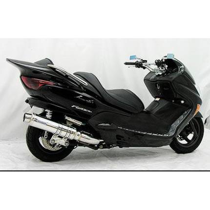 ■受注生産商品となっており、商品手配後 2週間程度入荷にお時間を頂きます。■フォルツァ( MF08 )用アルティメットマフラー ステンレス仕様です。究極の理想型を具現化した新時代マフラーです。高級感を追求したデザインを施し、ノーマル車からハードカスタム車まで、若者から年配者まで幅広い層に対応するマフラーに仕上げました。アルティメットマフラーは、高度な技術をぎっしりと余すところ無く詰め込んだ、クオリティの高い究極の一品に仕上がっています。サイレンサー出口には削り出しタイプを採用し、立体感ある造形が最終エンドを引き締める【 バズーカータイプ 】、内巻きタイプのスラッシュカットが高級感を漂わせる【 ポッパータイプ 】、シンプルでスポーティでありながら高級感を損なわないエンド処理を施した【 スポーツタイプ 】の3種類をご用意しております。性能の違いはなくデザインの違いだけですので、お好みに合わせて選択して頂けます。ステーにはこれまでに無かったアルミ無垢材から削り出した、ビレットタイプ を採用しました。WirusWinロゴも彫り込まれております。プレート、カラー、ボルトキャップすべてアルミ無垢材からの削り出しで製作しており、シャープで超高級デザインに仕上がっています。幾度ものテストを重ね、高強度で耐久性に優れた製品に仕上げました。サイレンサー内部には、従来オプション扱いだった【 キャタライザー(排ガス浄化触媒)】を標準装備しておりますので、ノーマル同様の環境性能を発揮致します。音量、音質にもとことん拘って、歯切れの良いサウンドを醸し出します。音量は静か目に設定していますので、近所迷惑になる事無く走行できます。バッフル(消音用のパーツ)を標準装備しておりますので、簡単な作業で2種類の音量が選択できます。装着はステーを2点止めで固定し、サイレンサーをバンドで止めてエキパイをエンジン側に固定するだけですので比較的簡単に取り付けできます。性能面でも低中速の落ち込みをなくしスムーズな走行を実現させています。ローダウン車にも対応できるよう製作しています。極端なローダウン量、ショックの固さ、走行条件、ワイドカウル装着等で場合によりボディと干渉する恐れがありますのでご注意下さい。干渉してしまう際には走行時にはリアショックを一番固い設定にして使用してください。●バッフル装着時:排気音量約 90db●バッフル非装着時:排気音量 約 93db