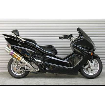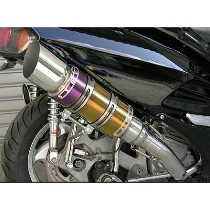 ■受注生産商品となっており、商品手配後 2週間程度入荷にお時間を頂きます。■フォルツァ(MF06)用ビーストショートマフラー タイプEです。今、流行のサイレンサーをカチ上げたタイプのマフラーです。極端に派手すぎず、できるだけシンプルにトータルバランスを考えて自然なラインをイメージして制作しました。ステーには強度の高い12mm径のステンレス丸棒を使用しており、幾度ものテストを重ねて、高強度で耐久性に優れた製品に仕上げました。サイレンサーにはレーシングマシンにも採用されている、超軽量で高硬度のチタン [titanium]を採用しています。サイレンサー以外の材質は、耐久性、耐食性の高いステンレス製になります。装着はステーを2点止めで固定し、サイレンサーをバンドで止めてエキパイをエンジン側に固定するだけですので比較的簡単に取り付けできます。音量、音質にもとことん拘って、歯切れの良いサウンドを醸し出します。バッフル(消音用のパーツ)を標準装備しておりますので、簡単な作業で2種類の音量が選択できます。出口はインパクトのある大口径115mm径のEタイプ、チタンサイレンサーボディは、焼き色バージョン、ポリッシュバージョンから、お好みに合わせて選択可能です。※車体装着見本の画像は、焼き色バージョンです。●バッフル装着時:排気音量約 90db●バッフル非装着時:排気音量 約 94db