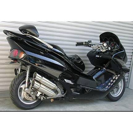 ■受注生産商品となっており、商品手配後 2週間程度入荷にお時間を頂きます。■フォルツァ(MF06)用アトミックツインマフラー ポッパータイプです。サイドバイサイドマフラー、スタイリッシュツインマフラーの2本出しタイプは発売以来大好評で、いまだ人気が衰えず絶好調です。しかしウイルズウィンは進化を留めることなく、さらに2本出しマフラーに勢いをつけるために第3弾を制作しました。アトミックツインマフラーは、ビックスクーター界で主流になりはじめたサイレンサーを短くした、最先端のドレンドマフラーです。極端に派手すぎずできるだけシンプルに自然なラインをイメージして制作しました。サイレンサーをできるだけ短くとり、車体のラインに調和させました。あらゆるカスタムに似合うよう高級感、シンプル感を出し、たくさんの方々からの意見を取り入れ製作しました。他社には無い時代を先行く2本出しマフラーが完成しました。バッフル(消音用パーツ)は、サイレンサー1本に対し1つずつ装備されていますので、簡単な作業で3種類の音量を選択できます。音質はとてもマイルドで重低音です。また、ローダウン車にも対応できるよう製作しています。ローダウン車(ウイルズウィン製リアショック装着車)でのテスト走行では問題ありませんでしたが、極端なローダウン、ショックの固さ、走行条件等で場合によりボディと干渉する恐れがありますので、走行時にはリアショックを一番固い設定にし使用してください。材質は、耐久性、耐腐食性の高いオールステンレス製です。 ●バッフル両方装着時:排気音量 約 92db●バッフル片側装着時:排気音量 約 95db●バッフル非装着時 排気音量 約 98db