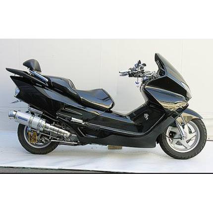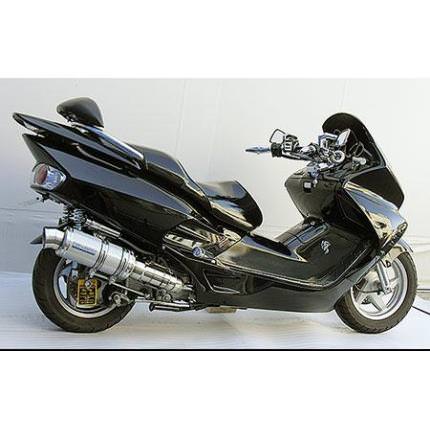 ■受注生産商品となっており、商品手配後 2週間程度入荷にお時間を頂きます。■フォルツァ( MF08 )用プレミアムマフラー シルバーカーボン仕様です。かち上げでも無くショートでも無い、革新的次世代マフラーです。迫力と高級感のトータルバランスに優れており、ノーマル車からハードカスタム車まで、若者から年配者まで幅広い層に対応するマフラーに仕上げました。サイレンサー出口には削り出しタイプを採用し、立体感ある造形が最終エンドを引き締めています。エキパイには極太76mm径パイプを輪切りカットし、溶接職人が丁寧に絶妙な技で繋ぎ合わせて造り上げており、ワンオフマフラーのような迫力とプレミアムな印象の高い仕様になっております。プレミアムマフラーは、高度な技術をぎっしりと余すところ無く詰め込んだ、プレミアムでクオリティの高い究極の一品に仕上がっています。サイレンサーメインパイプ以外には、耐久性、耐食性の高いステンレスを採用しております。ステーには強度の高い12mm径のステンレス丸棒を採用しており、幾度ものテストを重ね、高強度で耐久性に優れた製品に仕上げました。音量、音質にもとことん拘って、歯切れの良いサウンドを醸し出します。バッフル(消音用のパーツ)を標準装備しておりますので、簡単な作業で2種類の音量が選択できます。装着はステーを2点止めで固定し、サイレンサーをバンドで止めてエキパイをエンジン側に固定するだけですので比較的簡単に取り付けできます。性能面でも低中速の落ち込みをなくしスムーズな走行を実現させています。ローダウン車にも対応できるよう製作しています。極端なローダウン量、ショックの固さ、走行条件、ワイドカウル装着等で場合によりボディと干渉する恐れがありますのでご注意下さい。干渉してしまう際には走行時にはリアショックを一番固い設定にして使用してください。オプションとしてアルミ無垢材から削り出したビレットマフラーステーをご用意しております。WirusWinロゴも彫り込まれており、プレート、カラー、ボルトキャップすべてアルミ無垢材からの削り出しで製作し、シャープで超高級デザインに仕上がっています。更なるプレミアム感の演出に最適です。●バッフル装着時:排気音量約 92db●バッフル非装着時:排気音量 約 96db