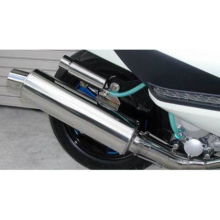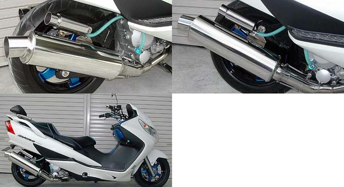 ■受注生産商品となっており、商品手配後 2週間程度入荷にお時間を頂きます。■スカイウェイブ(CJ43)用コンビネーションマフラーです。このマフラーは、現在販売している人気の3タイプのマフラーのいい所ばかりを集めて全体的なバランスなど細かいところまでこだわりぬいて製作いたしました。1. マ−ベラスレーシングのレーシーなサイレンサー2. ビッグバズ−カーの迫力のエキパイ3. ジャイアントキラーの極太なジョイント部分これ以上にない完成度です。 バッフル(消音用のパーツ)を標準装備しておりますので、簡単な作業で2種類の音量が選択できます。材質は、耐久性、耐腐食性の高いオールステンレス製です。 ●バッフル装着時:排気音量約 90db●バッフル非装着時:排気音量 約 94db
