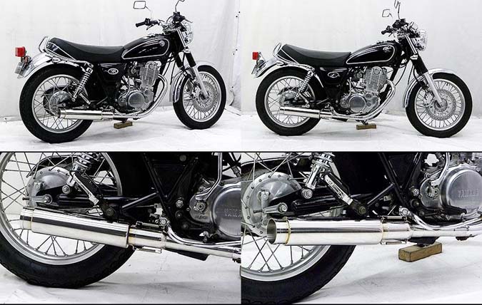 SR400・500用 ロッドサイレンサーマフラー(スリップオンタイプ)です。(キャブ車専用でFIインジェクション車には装着できません。)●サイレンサー部分だけ取り替えるスリップオンタイプの商品です。フルエキゾーストタイプマフラーではありませんのでご注意ください。●平成22年4月1日より施行された認証制度に適合する認証マフラーではありません。ご理解の程よろしくお願い致します。●このサイレンサーの出口は業界初のステンレスの削り出しで、立体感あふれる手の込んだ造りになっています。ここの部分だけでも十分な価値があります!●音量、音質は、静かめで軽快な低音です。決して音がうるさいとか、耳障りな音ではありませんので、安心して街乗りで使用できます。●このマフラーはサイレンサー内部に消音材として一般的なグラスウールを使用せず、内部をいくつかの部屋に分けることによって音を押さえているため、マフラーを破損したりしないかぎり、音量が変わる事はありません。●取り付けは無加工ボルトオンで簡単に装着できます。●オールステンレス製。●バッフル装着時:排気音量約 90db●バッフル非装着時:排気音量 約 94db