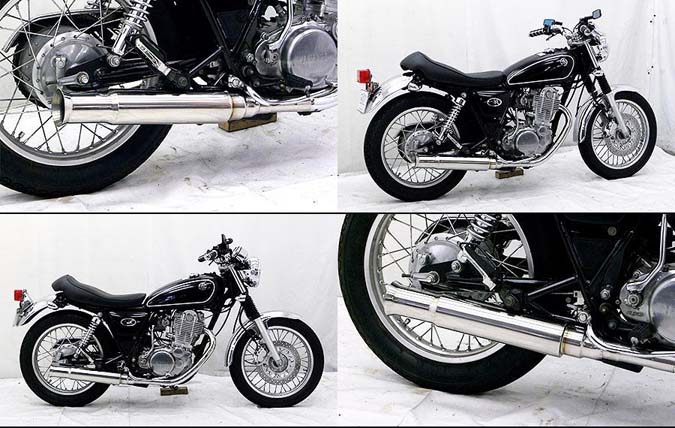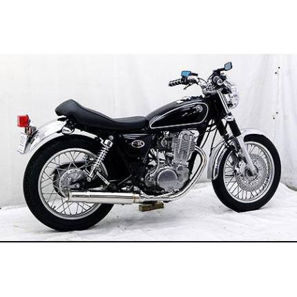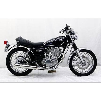 ■受注生産商品となっており、商品手配後 2週間程度入荷にお時間を頂きます。■SR400・500用 オープンエンドマフラー(スリップオン)です。●※サイレンサー部分だけ取り替えるスリップオンタイプの商品です。フルエキゾーストタイプにマフラーではありませんのでご注意ください。※平成22年4月1日より施行された認証制度に適合する認証マフラーではありません。ご理解の程よろしくお願い致します。●排気口を拡げたクラシカルなイメージのシルエットで、シンプルな形状でありながら存在感溢れるスタイルに仕上げました。●エキパイは42.7mm径、サイレンサーは90mm径を採用しています。耐久性、耐腐食性の高いオールステンレス製です。●そしてこのマフラーの1番の売りは「音」です。音量、音質は抜群です!低くて重厚感のある重低音がドッドッドっと響く、抜群のサウンドです!決して音がうるさいとか、耳障りな音ではありませんので、安心して街乗りで使用できます。●バッフル(消音用のパーツ)を標準装備しておりますので、簡単な作業で2種類の音量が選択できます。●取り付けはノーマルと同じ様に無加工ボルトオンで簡単に装着できます。●バッフル装着時:排気音量約91デシベル。バッフル非装着時:排気音量約95デシベル。