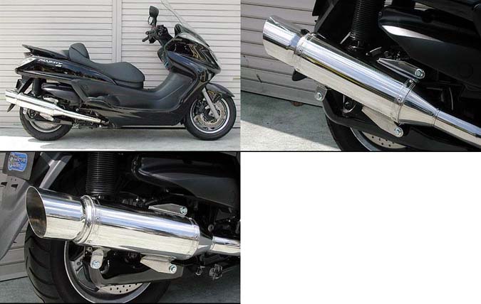■受注生産商品となっており、商品手配後 2週間程度入荷にお時間を頂きます。■グランドマジェスティ用エクシードマフラーです。サイレンサーの両端末には、エッチング加工のエンドバンドを使用し、細かい箇所でドレスアップ演出を施しています。また、エキパイとサイレンサーのエキパイのジョイント部には、スムーズなラインを出すためにテーパー加工設計にしています。幅広い層に気に入ってもらえるよう、シンプルで高級感溢れるマフラーに仕上げました。車体のラインに調和するようにサイレンサーの位置を吟味し、あらゆるカスタムに似合うようシンプルながら高級感をイメージし、たくさんの方々からの意見を取り入れ製作しました。これ以上にない完成度です。音量、音質にもとことん拘って、何本ものテスト品の中からベストな構造を導き出して完成させました。うるさすぎず静かすぎず、歯切れの良い重低音サウンドを醸し出します。バッフル(消音用のパーツ)を標準装備しておりますので、簡単な作業で2種類の音量が選択できます。性能面でも低中速の落ち込みをなくしスムーズな走行を実現させています。ローダウン車にも対応しておりますが、極端にローダウンしている車両(30mm以上ダウン、大きめのサイドカウル装着車)は、マフラーとボディが干渉する恐れがありますので、購入・装着にはご注意ください。材質は、耐久性、耐腐食性の高いオールステンレス製です。 ●バッフル装着時:排気音量約 90db●バッフル非装着時:排気音量 約 94db