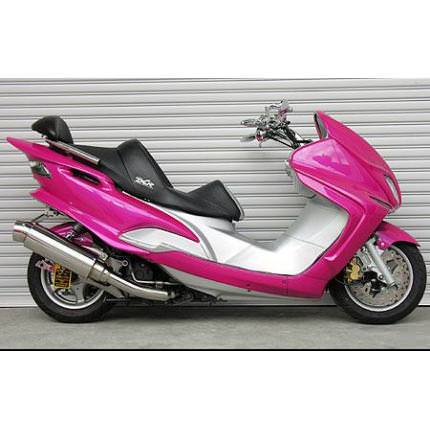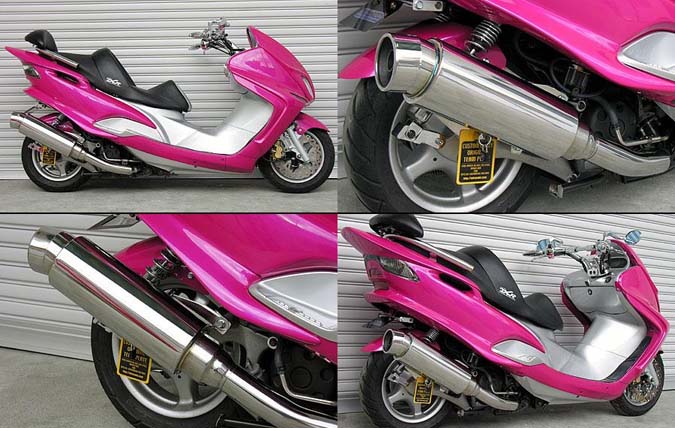■受注生産商品となっており、商品手配後 2週間程度入荷にお時間を頂きます。■マジェスティ125用ステップマフラーです。新設計により更なる高品質、驚愕の低価格を実現しました!!マフラー選びでお悩みの方、まずはこのマフラーからいかがでしょうかデザインは幅広い層に気に入って頂けるように、シンプルで高級感溢れるマフラーに仕上げました。サイレンサー出口には、内側にカールしたカールエンドタイプを使用しています。サイレンサーは迫力のある大型の125パイを採用しました。音量、音質にもとことん拘って、歯切れの良いサウンドを醸し出します。バッフル(消音用のパーツ)を標準装備しておりますので、簡単な作業で2種類の音量が選択できます。ローダウン車にも対応しておりますが、極端にローダウンしている車両(30mm以上ダウン、大きめのサイドカウル装着車)は、マフラーとボディが干渉する恐れがありますので、購入・装着にはご注意ください。●バッフル装着時:排気音量約 88db●バッフル非装着時:排気音量 約 92db
