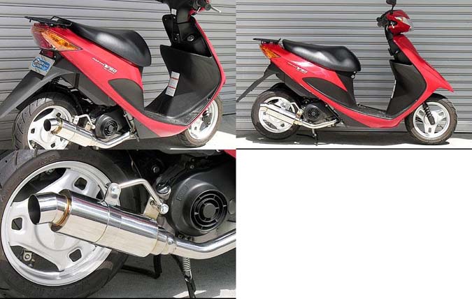 ■受注生産商品となっており、商品手配後 2週間程度入荷にお時間を頂きます。■アドレスV50・レッツ4用ロイヤルマフラー スポーツタイプです。落ち着きのあるハイクオリティーデザインでシンプルに仕上がっています。性能面では排圧によるコントロールで低速から高速までスムーズな走行を実現しています。消音材には、上質のグラスウールとスチールウールを使用していますので、音は、静音で重低音サウンドを醸し出します。心地よい低音を堪能できます。取り付けはサイレンサーバンドを使用してしっかり2点止めで固定きます。ボルトオンで簡単に装着できます。センタースタンドはそのままで取り付けでき使用も可能です。バッフル(消音用のパーツ)を標準装備しておりますので、簡単な作業で2種類の音量が選択できます。オールステンレス製。●バッフル装着時:排気音量約 84db●バッフル非装着時:排気音量 約 88db