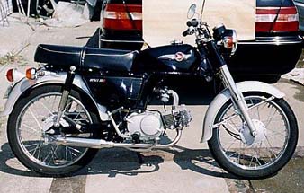 近年のカブ人気に便乗して、CD・ベンリー・CL系のバイクも人気が出てきたので、カフェレーサーをイメージしたマフラーを制作しました。シンプルな形状でありながら、存在感溢れるスタイルのシャープタイプ・サイレンサーを採用し、エキパイは緩やかなアールで1曲げとして、とてもシンプルに仕上げました。センタースタンド、キックペダルはそのままで取り付け可能です。音量、音質は、さすが90ccと唸らせる低くて重厚感のある重低音が、ドッドッドっと響く抜群のサウンドです。決して音がうるさいとか、耳障りな音ではありませんので、安心して街乗りで使用できます。このマフラーはサイレンサー内部に消音材として一般的なグラスウールを使用せず、内部をいくつかの部屋に分けることによって音を押さえているため、マフラーを破損したりしないかぎり、音量が変わる事はありません。CD90につきましては、センタースタンドを取り外しての装着となります。