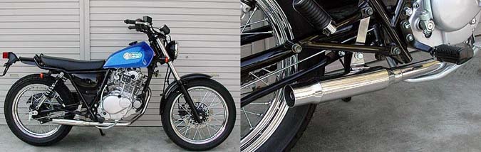 04〜グラストラッカー ビッグボーイ・グラストラッカー・ST250用のシャープマフラーです。エキパイが1本タイプに装着可能です。※型式:BA-NJ4BA・キャブレター仕様車に適合します。※マフラー全てを交換するフルエキゾーストタイプのマフラーです。※平成22年4月1日より施行された認証制度に適合する認証マフラーではありません。ご理解の程よろしくお願い致します。高級感がありシンプルで迫力のあるデザインに仕上げました。38mm径のエキパイを、3カ所曲げ加工を施し大変インパクトがあります。サイレンサーが非常に小さく細いため、気に入った音量、音質にするにはとても苦労しました。音質はスーパートラップに負けない位良い音で、とても良い感じですよ!音量はスーパートラップと同じくらいか、それより少し静かです。サイレンサー内には、グラスウールなどの消音材などを使用せず、サイレンサー内にいくつかの部屋を作る事によって音量、音質を完成させている為、マフラーを破壊したりしない限り、サウンドは半永久的に変わる事はありません。