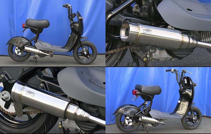 ■受注生産商品となっており、商品手配後 2週間程度入荷にお時間を頂きます。■チョイノリ用のロイヤルマフラー バズーカータイプです。落ち着きのあるハイクオリティーデザインでシンプルに仕上がっています。性能面では排圧によるコントロールで低速から高速までスムーズな走行を実現しています。消音材には、上質のグラスウールとスチールウールを使用していますので、音は、静音で重低音サウンドを醸し出します。心地よい低音を堪能できます。取り付けは無加工ボルトオンで簡単に装着できます。センタースタンドはそのままで取り付けでき使用も可能です。バッフル(消音用のパーツ)を標準装備しておりますので、簡単な作業で2種類の音量が選択できます。●バッフル装着時:排気音量約 84db●バッフル非装着時:排気音量 約 88db