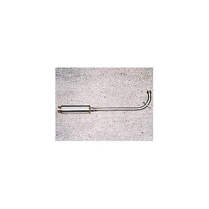近年のカブ人気に便乗して、CD・ベンリー・CL系のバイクも人気が出てきたので、カフェレーサーをイメージしたマフラーを制作しました。このサイレンサーの出口は業界初のステンレスの削り出しで、立体感あふれる手の込んだ造りになっています。ここの部分だけでも十分な価値がありますよ!エキパイは緩やかなアールで1曲げとして、とてもシンプルに仕上げました。センタースタンド、キックペダルはそのままで取り付け可能です。音量、音質は、静かめで軽快な低音です。決して音がうるさいとか、耳障りな音ではありませんので、安心して街乗りで使用できます。このマフラーはサイレンサー内部に消音材として一般的なグラスウールを使用せず、内部構造を工夫することによって音を押さえているため、マフラーを破損したりしないかぎり、音量が変わる事はありません