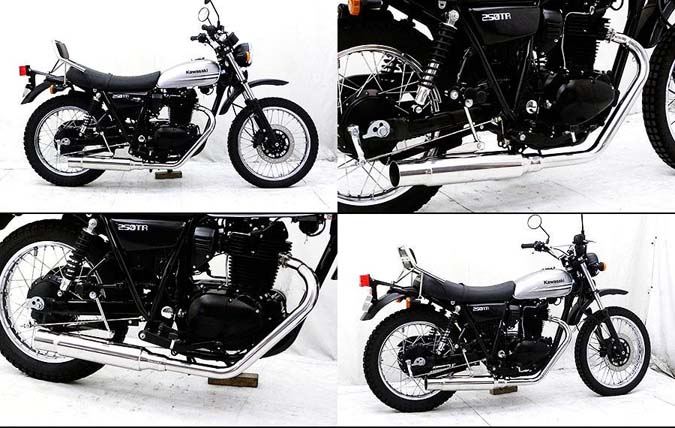 ■受注生産商品となっており、商品手配後 2週間程度入荷にお時間を頂きます。■250TR用 グランドシャープマフラーです。※型式:JBK-BJ250F・FI(フューエルインジェクション)仕様車に適合します。型式:BA-BJ250F・キャブレター仕様車には適合しませんのでご注意下さい。※マフラー全てを交換するフルエキゾーストタイプのマフラーです。※平成22年4月1日より施行された認証制度に適合する認証マフラーではありません。シンプルな形状でありながら、存在感溢れるスタイルのシャープタイプサイレンサーを採用しました。チョッパースタイル、アメリカンスタイル、カフェレーサースタイルに合うマフラーです。エキパイは存在感を出すため太めの45mm径を採用。サイレンサーは細すぎず太すぎずの90mm径を採用しています。このマフラーの1番の売りは「音」です。音量、音質は抜群です!低くて重厚感のある重低音がドッドッドっと響く、抜群のサウンドです!決して音がうるさいとか、耳障りな音ではありませんので、安心して街乗りで使用できます。バッフル(消音用のパーツ)を標準装備しておりますので、簡単な作業で2種類の音量が選択できます。性能面では排圧コントロールによって低速から高速までスムーズな走行を実現しています。取り付けはノーマルと同じ様に無加工ボルトオンで簡単に装着できます。耐久性、耐腐食性の高いオールステンレス製。●排気音量:約88デシベル(バッフル装着時)、約92デシベル(バッフル取り外し時)。