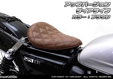 ■受注生産商品となっており、商品手配後 2週間程度入荷にお時間を頂きます。■純正シートを外して無加工でボルトオンで取り付けできるソロシートKitです。専用の取り付けステーはサビなど腐食に強いステンレス製で、シート裏の固定箇所4点をしっかり固定できます。人とは違う個性的なカスタムをしたい方に最適な逸品です。●様々なカスタムに合うようバリエーションとして、基本形状の座面が水平でフラットな【 フラットバージョン 】と、座面後端が跳ね上がっている【 アップバージョン 】の2バージョンをベースに、それぞれに表皮のデザインを【 スムージングタイプ 】【 タックロールタイプ 】【 ダイアタイプ 】【 ステッチタイプ 】の4タイプご用意していますので、お好みによって選択して頂けます。●カラーは【 ブラック 】【 ブラウン 】の2色をご用意しております。●シートサイズは、フラットバージョンが縦325mm、横240mm。アップバージョンが縦330mm、横250mmです。●防水加工は施しておりますが、洗車時や長時間雨ざらしにするなど大量の雨水がシートにかかった場合、スポンジとシート生地の間に雨水が溜まり数日間抜けきらない場合がございますので、水がかかる事が予想される場合はカバー等をして保護して下さい。申し訳ございませんが、ご理解の程よろしくお願い致します。