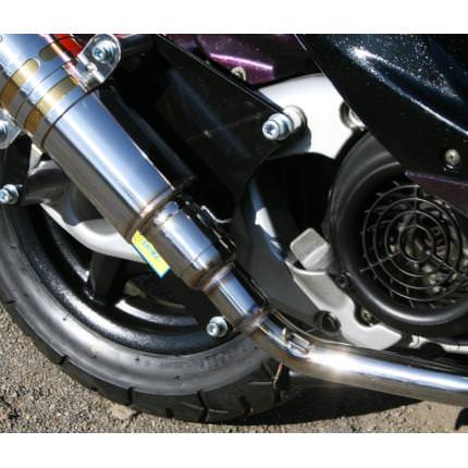 独自に開発した隔壁構造サイレンサー搭載。細かなサイレンサー内部寸法は、マシンの排気量や気筒数などに合わせ、ミリ単位でのセッティングを行い、扱い易いフラットなトルクと魅力的な重低音質のエキゾーストノートを実現しました。