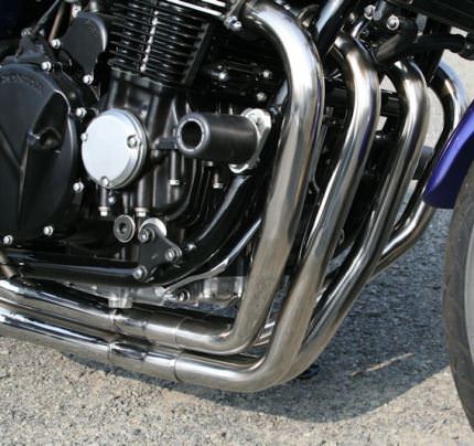 平成22年新騒音規制適合マフラー。CB750FcのディテールをそのままにRC42用として開発しました。サイレンサーは、φ80×400サイズを採用。中低速域で頼りあるレスポンスと力強さを発揮するので、コーナー進入で普段より一つ上のギアを選択してもスムーズに立ち上がります。RPM-421ブランドマフラー(品番:2064)のポテンシャルを超えながらも、加速騒音値76dbという高い静穏性能を誇ります。立ち上がりから高速走行までがスムーズになるので、高速道路への進入も楽になり、峠などのアップダウンの多い道でも余裕のパワーでライディングを楽しめます。マフラー総重量をスタンダードマフラーの半分以下に軽量化する事で、車体の機動力が飛躍的にアップしました。
