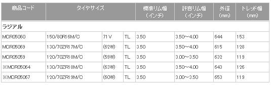 標準リム幅:3.5 許容リム幅:3.5~4 外径:615mm トレッド幅:128mm