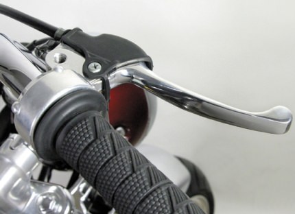 ノーマルスタイルをイメージしながら、深い握り込みやコントロール性を図り、細部まで形状を作り込んだ操作性に優れたオリジナルレバーです。●レバーを握った時のタッチにもこだわり、操作部の幅の拡大やスムーズな曲面形状にすることでノーマルレバーには無い握り易さを実現しました。●製造方法に熱間鍛造成型を採用することで強度に優れ、転倒時等でも破損しにくくなっています。レバーの表面処理にはクロムメッキ、バフ研磨、バレル研磨、バフ研磨ブルーアルマイト、バフ研磨ブラックアルマイの5種類を採用。カスタム車両のイメージに合わせてお選び頂けます。ブレーキはノーマルドラムブレーキが対象となります。