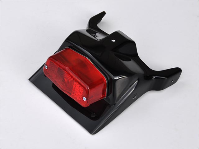 シート下にテールランプが収納され、リア周りをすっきりみせるフェンダーレスキット。●視認性の高いルーカスLタイプのテールランプがセットされています。本体はFRP製、表面は艶のあるサフェーサーコート、裏面サフェースマット&黒塗装仕上げ。●ウインカー取り付け穴(10mm)が用意されています(ノーマルウインカー取付不可)。●ノーマルシートに対応します。弊社『ストリートセミダブルシート』との同時装着は不可。●FTR(223)全年式にボルトオン設計(FTR250は除く)。