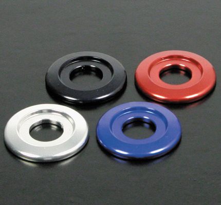 モンキー等のツインショック固定部分に取付けるドレスアップワッシャーです。ノーマルリアクッションマウントワッシャーと交換するだけで手軽にリアショック部のドレスアップが可能になります。●ワッシャーはアルミ材を削り出し、表面にカラーアルマイトが施されています。●ワッシャーの形状はシンプルな「プレーンタイプ」と穴加工を施し、デザイン性を高めた「8ホールタイプ」の2種類、カラーアルマイトはシルバー、ブラック、ブルー、レッドの4種類からお選び頂けます。●ワッシャーサイドには武川ロゴがレーザーマーキングされています。対象はMonkey・Gorilla・Monkey(FI)・Super cub50・Little cub等のツインショック車、リアショックの取付けネジ径がM10ナット(フランジナットを除く)で二面幅14mmの車両が対象になります。●武川製リアクッションマウントナット(06-06-0009~0012 / 06-06-0017~0020)との同時装着は出来ません。●武川製リアショックナット(ステンレス製)(00-00-413 / 00-00-0412)との同時装着は出来ません。