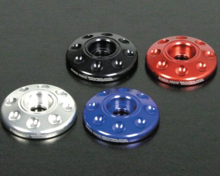 スーパーカブ・リトルカブのノーマルフロントカバーを固定する際に使用するボルトとセッティングワッシャーを弊社製ソケットキャップスクリューとアルミ削り出しフロントカバーセッティングワッシャーに交換することで、手軽にドレスアップすることが出来ます。セッティングワッシャーはアルミ材を削り出し、表面にカラーアルマイトが施されています。セッティングワッシャーの形状はシンプルな「プレーンタイプ」と肉抜き加工を施し、デザイン性を高めた「8ホールタイプ」の2種類、カラーアルマイトはシルバー、ブラック、ブルー、レッドの4種類からお選び頂けます。サイド部分には武川ロゴがレーザーマーキングされています。●スーパーカブ50(FI)、リトルカブ(FI)はフロントカバー下部の形状、取付けボルトが異なる為、取付け出来ません。●フロントカバーフックとの併用は出来ません。