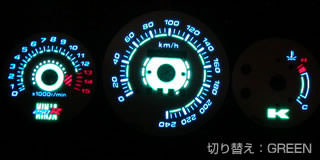 ●Odax E.Lメーターパネルの特徴… ・国内設計「ハイ・クオリティ」「ハイ・ユーティリティ」「リーズナブル・プライス」を実現! ・ノーマルのメーター指針を取り外すことなく取り付けが可能です!(取り付け易さ大幅UP!) ・車種専用取り扱い説明書付き! ・安心の一年保証! ●ELメーターとは…電圧を加えると発光する物質、E.L(エレクトロ・ルミネッサンス)ディスプレイをメーターに応用し、シート状にしたもの。E.Lシートは超薄型(約0.2mm)が可能なため、自動車・バイク用にパネル化したものをノーマルのメーター上に貼り付けて、電気的に発光させるものです。ELメーターは低電圧で高い輝度が得られ、しかも点ではなく面で光りますので、パネル全体がムラなく均一に発光します。特に夜間の鮮やかな照明は、夜のツーリングを楽しくさせてくれるでしょう。 ※ELメーターは紫外線に弱い性質がありますので、装着後は直射日光に当てないようにしてください。紫外線に当たると表面の変色・変形や寿命にも影響を与えます。 ●A.C スタイル…人気のホワイトパネルをベースに、数字・目盛をさらに見やすく表示しました。これまでのSRP製のリバースタイプと比較し、発光部分を増やすことで夜間の視認性も大幅にUP。また、ブルーとグリーンの色の切り替えもよりハッキリと分かるようになっています。 ※2色切替機能付