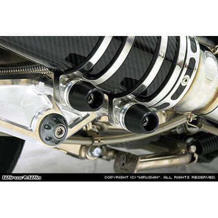 ・レースシーンからのフィードバックした製品で、転倒等してしまった際にマフラーへのダメージを最小限に抑えます。サイレンサーバンドの固定箇所に共締めして装着するタイプで、サイレンサーバンドで固定されてるマフラーでしたら他社製のマフラーにも組み合わせて装着可能です(仕様をご確認くださいませ)。・プロテクターはジュラコン(R)(特殊プラスチック)製、ブラケットはアルミ無垢材からの削り出し製、付属ボルト、ナットはステンレス製です。・付属の5mm厚カラーでプロテクターをマフラーの外側に突き出す量が調整できるようになっています。5mm厚カラーは3枚付属しています。サイレンサーの直径が90mm〜120mmまで対応します。固定ボルトサイズはM8(ネジ径8mm)です。・M10(ネジ径10mm)で固定されている箇所には装着できません。・固定ボルトサイズ長:100mm・ボルトを通す部分のプロテクター+ブラケットの厚みは、35mmになります。※ジュラコン(R)は、ポリプラスチックス株式会社が日本その他の国で保有する登録商標です。