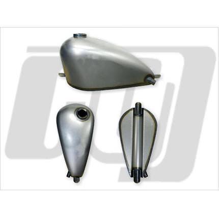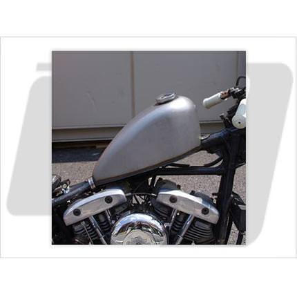 ナロースポーツスタータンクロートンネル。カスタムチョッパー車両などでお馴染のロートンネルスポタンのナロータイプです。ナロー具合がチョッパーにピッタリマッチします。サイズは縦(タブ含):約445mm、横:約205mm、高さ(キャップ除):約180mmトンネル幅:約46mm、トンネル高さ:約30mmコックは左後方、1/4サイズになります。キャップはカムタイプになります。容量は約7L
