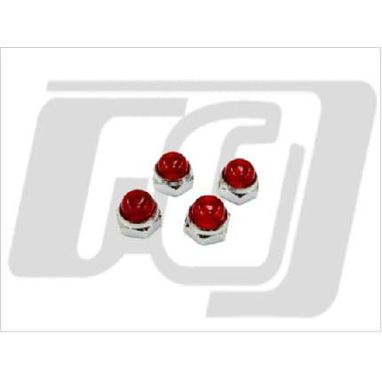 ショベルヘッド用 ロッカーシャフトエンドキャップ。赤/クローム 4コセットです。OEM7872 サイズ:7/16-20。オーバーホール時やエンジンのアクセントにどうぞ。