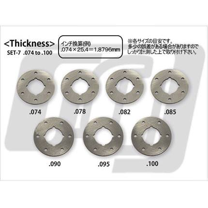 V-TWIN製 カウンターシャフトギアエンドスラストワッシャー.074-.100 7枚セット 4速トランスミッション用カウンターシャフトギアエンドのクリアランス調整に御使用頂けます。●OEM品番 :35875-36