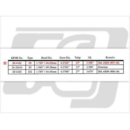 Kibblewhite precision machining製 ブラックダイアモンドインテークバルブ 1936-47年ナックルヘッド用