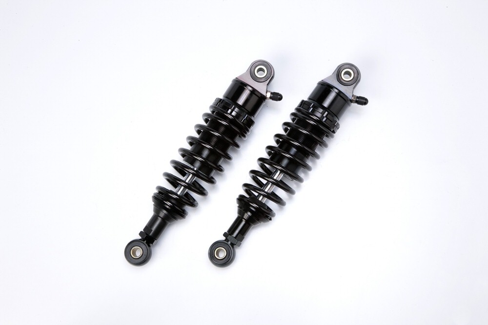 上下の取り付け穴内径を車種別に設定してありますので簡単に装着可能です。窒素ガス封入式です。純正のサスペンションより約20mmローダウンします。材質 ボディ:アルミ スプリング:スチール取付け穴の中心〜中心の長さ:約280mm ※エンドアイを伸ばすと10mm延長可能です。スプリングプリロードは無段階に調整できます。純正のサスペンションより車高が下がるので、タンデムの際は底突きにご注意ください。サスペンション2本セットにレンチ2本が付属します。画像は参考画像です。車種によってはカラーが装着されない場合やカラーの大きさが異なる場合があります。