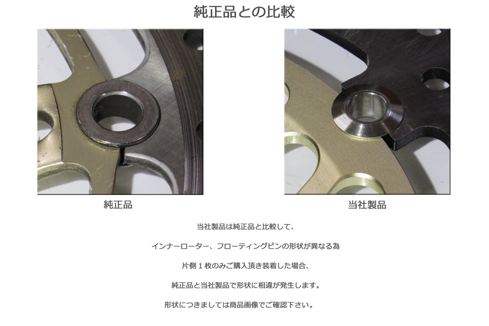 インナーローターカラー:シルバーサイズディスク外径:296mmディスク内径:58mmディスク厚:5mm ボルト穴数:6ボルト穴径:6.1mmオフセット:17mmPCD:74mm製造国:台湾この商品は当社の管理のもと、提携のディスクローター専門工場で純正と同等の材質を使用し製造しています。品質は純正品に近い仕上がりとなっています。輸送時の破損などを考慮し、走行前及び取り付け時に商品の曲り・振れを確認して頂き、万が一商品に不良がある場合は速やかに交換対応いたします。※但し、走行後はいかなる場合も返品・交換はいたしかねます。※片側1枚を購入された場合、車種・年式によっては純正品とインナーローター、フローティングピンの形状が違う場合がございます。※製品は重要保安部品のため、必ず整備資格者の従事する国土交通省の定める認証、認定工場で取り付けを行ってください。