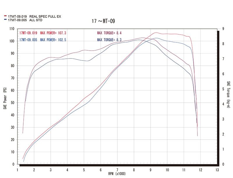 高級感溢れるチタン材を、エキゾーストパイプからサイレンサーまで贅沢に使用し、高パフォーマンスと軽量化を発揮。全ての回転域でパワーアップを可能としながらも、長距離走行において疲労を低減させる出力特性。3気筒独特の上質なワイバンサウンドを実現。最高出力:107.3ps(STD: 102.5ps)/最大トルク:8.4kg-m(STD: 8.3kg-m)重量: 3.7kg(STD: 8.4kg)オイル交換: ○オイルフィルター交換: ○センタースタンド: -純正パニアケース: -※YAMAHA純正オプション ソフトサイドバッグは取付できません。